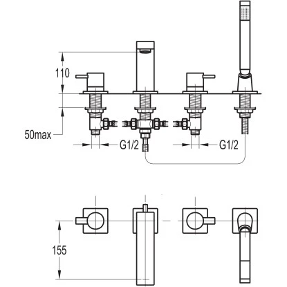 4-Loch-Wannenrandarmatur TQ1000 ECKIG