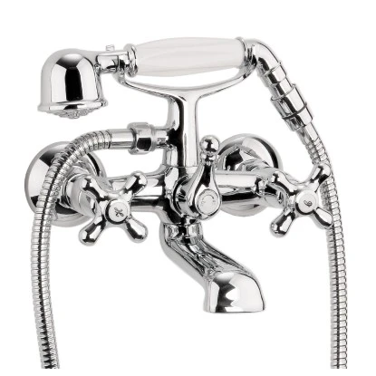 Die Zweigriff-Wannenarmatur Athenas glänzt mit ihrer nostalgischen Schönheit in Ihrem Badezimmer.