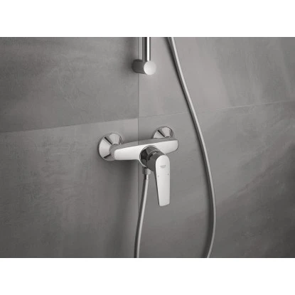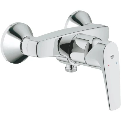 Die Grohe Duscharmatur BauFlow verfügt über eine hochwertige Grohe StarLight Oberfläche in Chrom. Die StarLight Oberfläche sieht nicht nur besonders gut aus, sondern ist auch sehr resistent gegenüber Kratzern und von daher sehr pflegeleicht. Die Armatur überzeugt durch modernes Design und einfache Bedienbarkeit. Zwei eingefärbte Punkte auf der Armatur geben an, in welche Richtung Sie den Hebel, für welche Temperatur bewegen müssen: Rot für warm und blau für kalt.