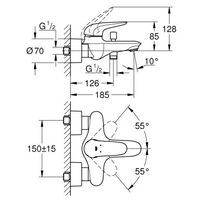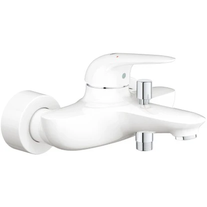 Die Grohe Einhebelmischer-Wannenarmatur Eurostyle Moon White überzeugt durch die variabel einstellbare Mengenbegrenzung und die robuste Grohe StarLight Oberfläche.
