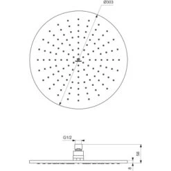 – Anschlussgewinde G1/2. Kopfbrause mit Kugelgelenk, 10 Grad schwenkbar.