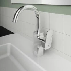 Die Ideal Standard Waschtischarmatur Ceraplan ist die neue Generation des Armaturen-Bestsellers überzeugt durch eine Kombination aus Modernität und Eleganz. Das macht Ceraplan zum idealen Begleiter sowohl für das ambitionierte Wohnbad als auch für den öffentlichen Waschraum.
