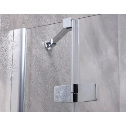 Bei der Tür handelt es sich um ein großes Glaselement, das teilgerahmt einen nahezu makellosen Eindruck vermittelt. Die Scharniere und der Türgriff sind in Chromoptik gehalten und stellen damit eine elegante Akzentuierung dar. Auch bei Nichtbenutzung ist die Dusche kein Platzverschwender, sondern wertet Ihr Badezimmer stilvoll auf.