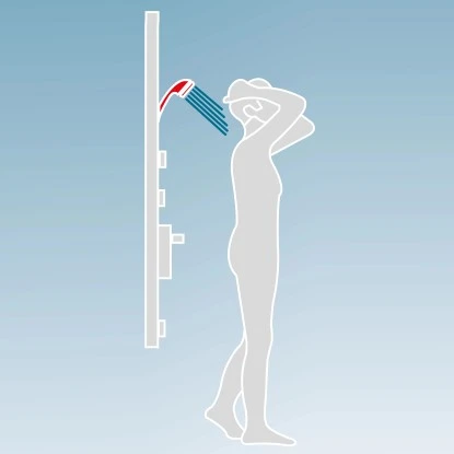 Der Dusch Master besitzt ein +38 °C Sicherheits-Thermostat sowie eine elegante Tellerkopfbrause. Der Korpus besteht aus Aluminium. Die Massagedüsen sind justierbar. Die Handbrause mit 3 Strahlarten lässt sich leicht reinigen.