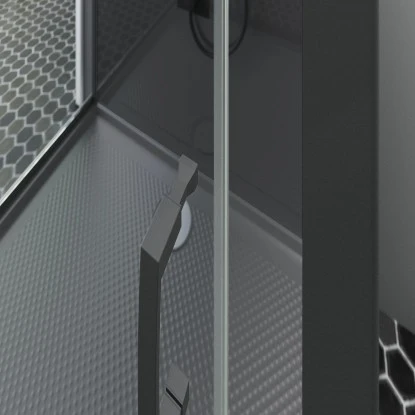 – Klar-helle Sicherheitsglaselemente kombiniert mit mattschwarzen Profilen machen die Duschkabine zu einem echten Hingucker im Bad.