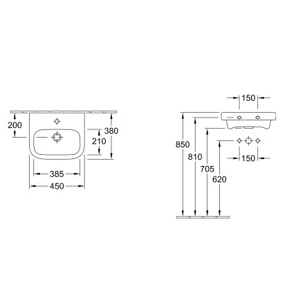 Das Villeroy & Boch Handwaschbecken Architectura eignet sich perfekt als Waschbecken im Gästebad und passt sich durch das schlichte Design in jede Umgebung ein. Das halbrunde Becken besteht aus hochwertiger Sanitärkeramik und ist mit einem Überlauf ausgestattet. Zudem verfügt es über ein Hahnloch für eine Einlocharmatur.